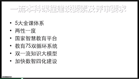 覃京燕教授从一流本科课程建设要素及评审要求、课程建设的案例分析、解决教学问题的有效方法、课程特色创新及成果辐射等四个方面对一流本科课程建设的标准与要求、实施与条件、设计与准备、运行与应用,以及申请书的撰写技巧、注意事项等内容做了详细的说明介绍与经验分享。