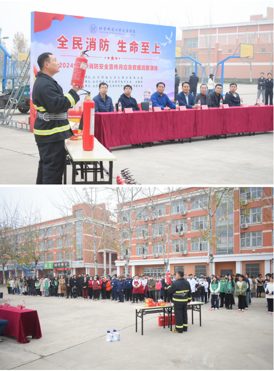 为深入贯彻落实习近平总书记关于安全生产和消防安全重要指示批示精神,全面增强威尼斯官网师生消防安全意识,提升学生火灾逃生自救和消防救援队伍应急处置能力,11月15日下午3:30,学院保卫处联合各责任单位在5斋新生宿舍楼开展“全民消防 生命至上”2024年119消防安全宣传月应急救援疏散演练活动。学院副院长张永锋,党委副书记郭雅娟及保卫处、学生处、后勤处相关负责同志出席活动,新入职教职工及新生代表参加本次演练。