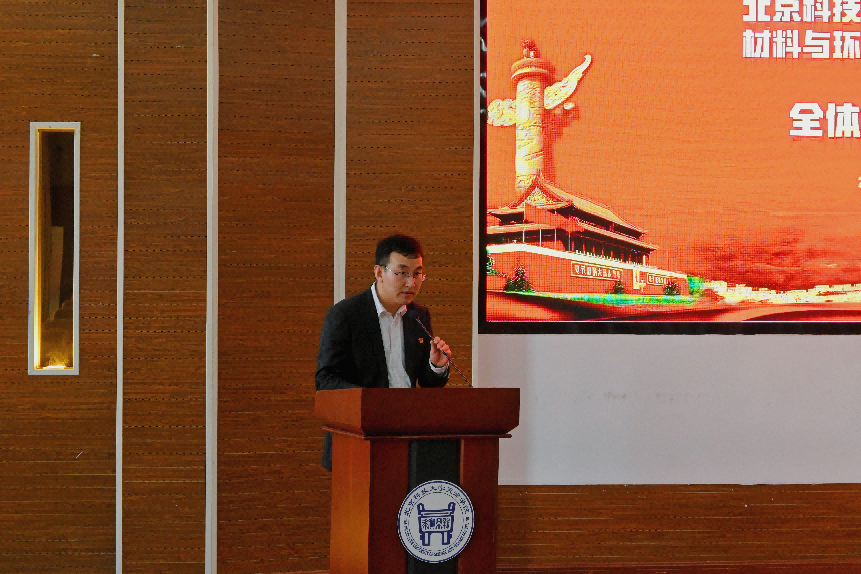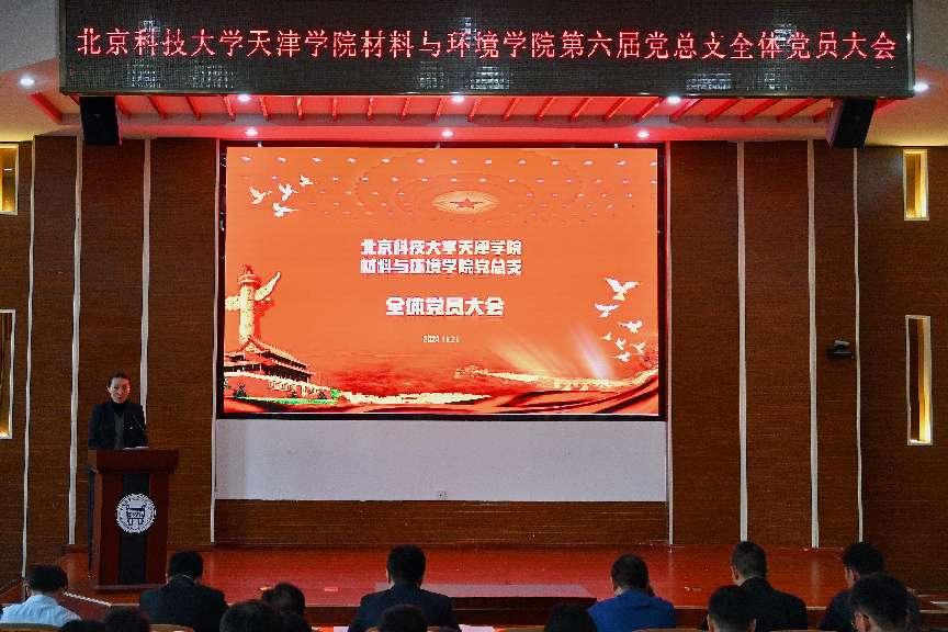 大会在庄严的《国歌》声中拉开了序幕。张飞鹏代表材料与环境学院总支委员会向大会做了工作汇报,全面总结了三年来党总支在党建和思想政治工作、学科专业建设等方面的情况,并对材料与环境学院未来三年发展提出展望。