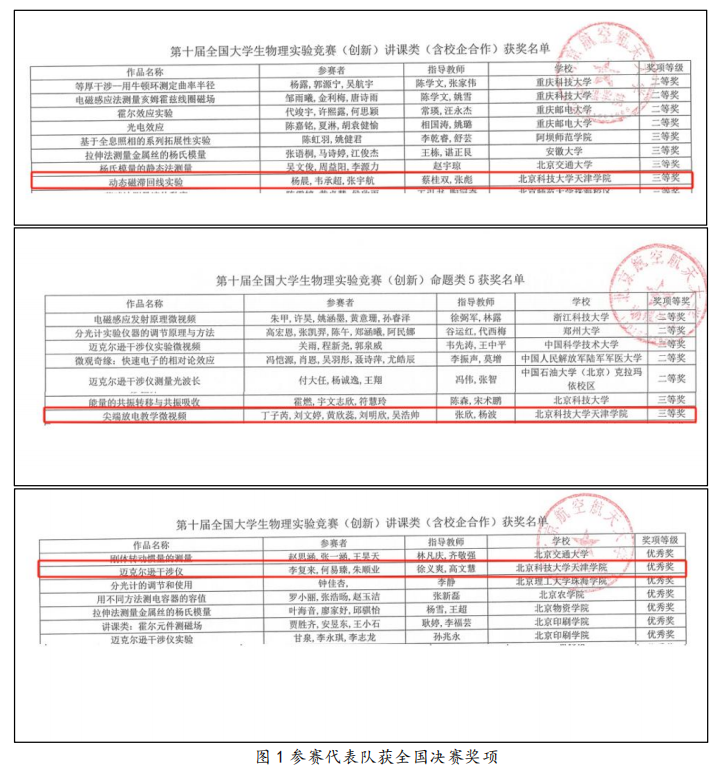 本次全国大学生物理实验竞赛历时3个多月,共吸引全国667所高校的2755支队伍参与比赛。在学院的大力支持下,由实验室管理中心杨波、蔡桂双、张欣、张彪、徐义爽和高文慧等六位老师担任指导教师,从威尼斯官网众多学子中选拔出的11名优秀选手组建三支代表队参赛。指导老师与团队成员精心设计比赛选题,合理规划讲课流程,合理分工协同作战,经过不懈努力,杨晨、韦承超、张宇航完成的《动态磁滞回线实验》在讲课类赛道中荣获三等奖,丁子芮、刘文婷、黄欣蕊、刘明欣、吴浩帅创作的《尖端放电教学微视频》在命题类赛道成功斩获三等奖,李复来、何易臻、朱顺业完成的《迈克尔逊干涉仪》作品在讲课类赛道获得优秀奖。