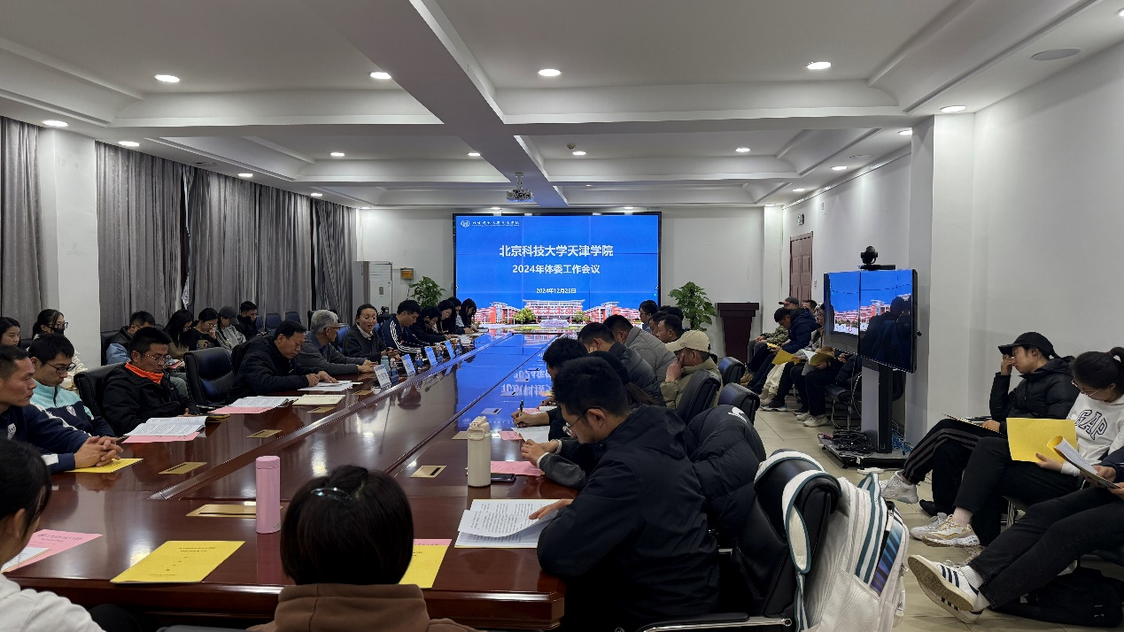 会议伊始,体育部主任吴铁桥对2024年学院体委工作取得的成绩进行了全面回顾,吴主任重点就本年度学院参加天津市体育赛事所取得的成绩,各二级院系校内体育赛事及活动情况进行了汇报,并总结了2024年体委工作相关经验。与此同时,他汇报了2025年学院20周年校庆中师生、校友运动会等工作的计划和安排。